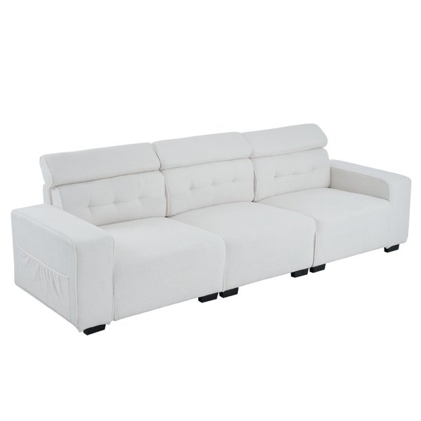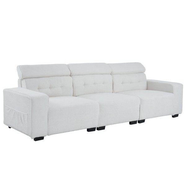 306*96*83cm Teddy Velvet, 26cm Fully Detachable Armrests, Three-Seater With Side Pockets, Backrest Pull Points, Indoor Multi-Person Sofa, Off-White
