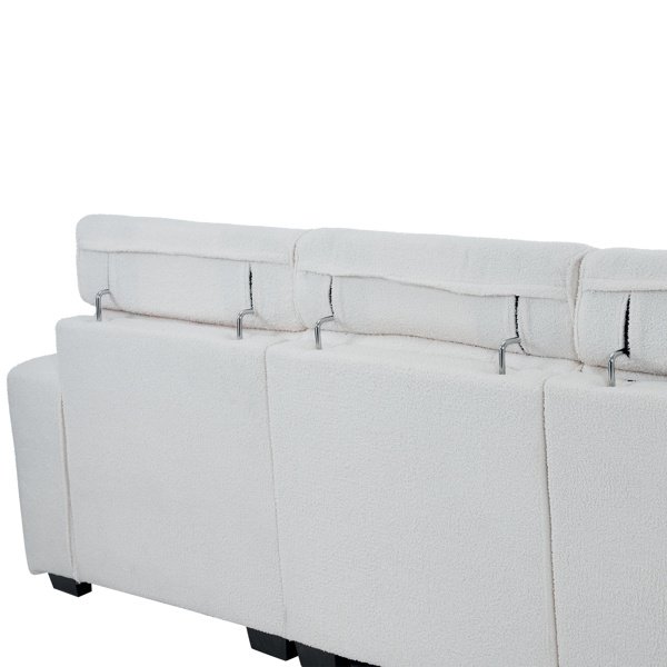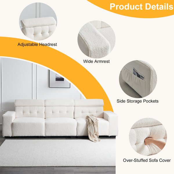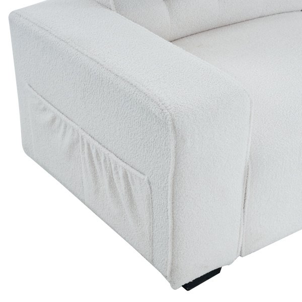 Home > 306*96*83cm Teddy Velvet, 26cm Fully Detachable Armrests, Three-Seater With Side Pockets, Backrest Pull Points, Indoor Multi-Person Sofa, Off-White