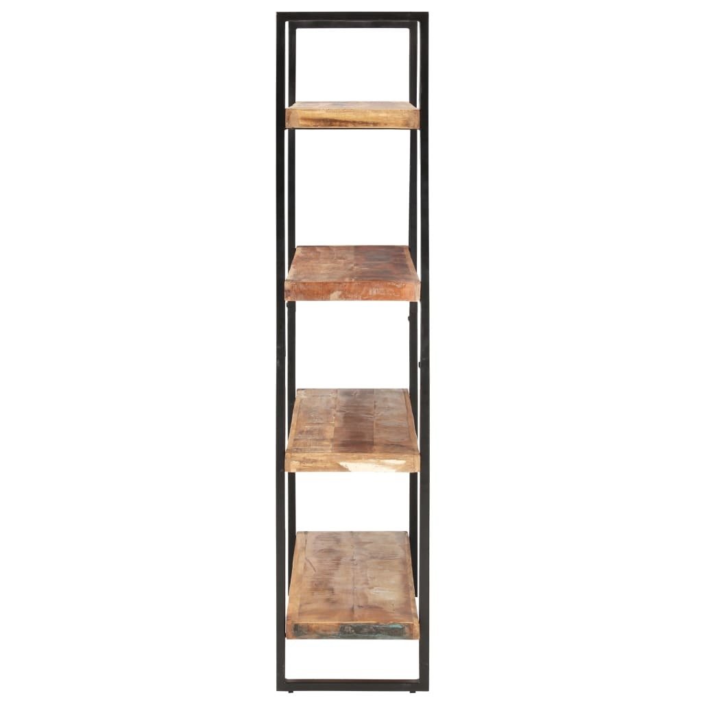 This bookcase has a sturdy powder-coated iron frame which gives it an industrial look. The shelves are made of solid reclaimed wood, sourced from joists, floors and support beams from old demolished buildings. Additionally, it is capable to consist of different types of wood like teak, hardwood, tropical wood, mango wood, etc. This means the reclaimed wood retains the characteristics of these different types of wood. Reclaimed wood is already aged, weathered and dried. Hence, they don't shrink or bend. The craftsmanship and the beautiful wood grains make every piece of furniture unique and slightly different from the next. The bookshelf has 4 shelves, providing ample space for keeping and displaying your essential items organized and within reach.