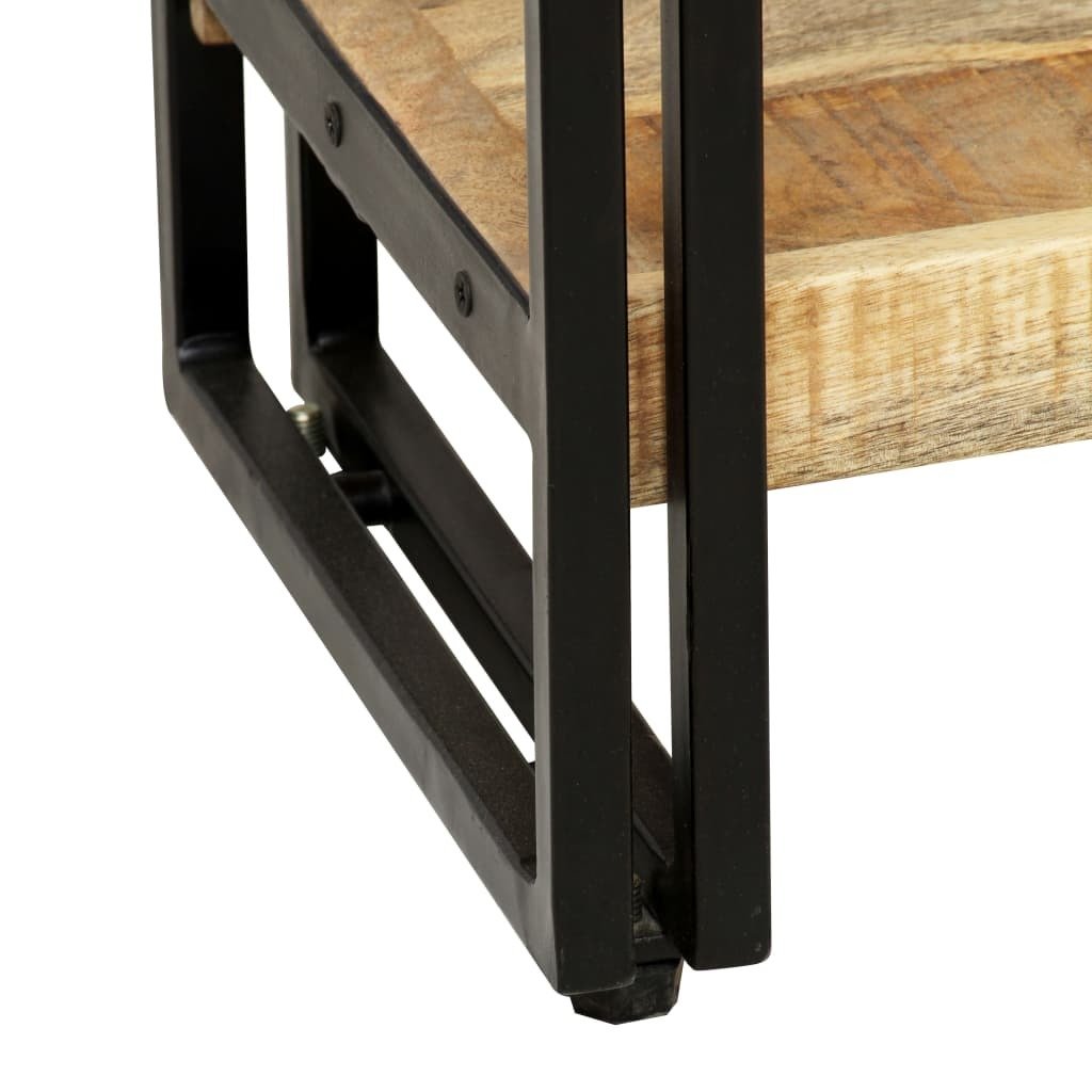 Material: Solid rough mango wood shelves + powder-coated steel frame