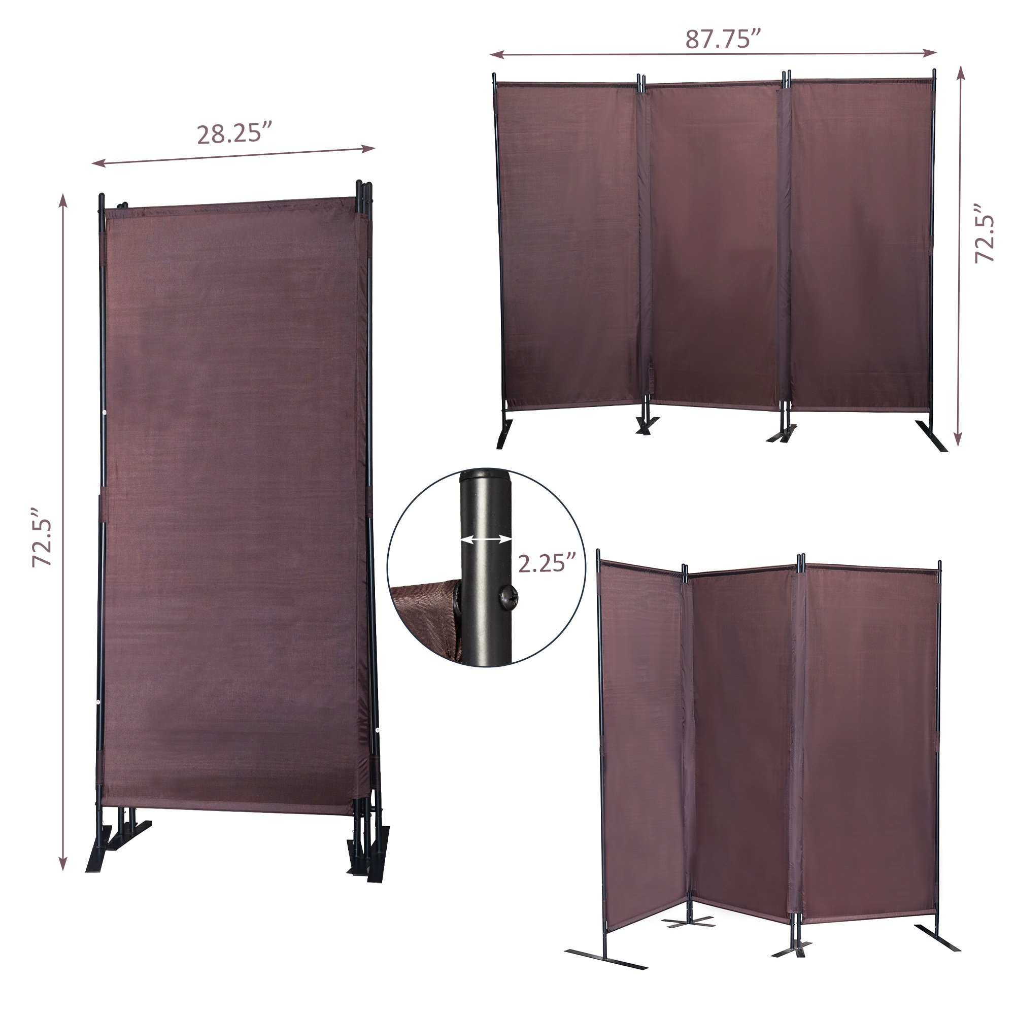 [3-Panel Privacy Screen]: This 6 ft freestanding room divider with 3 fabric panels can be fully expanded to 7.25 ft to create opaque privacy in living room, office, or studio.