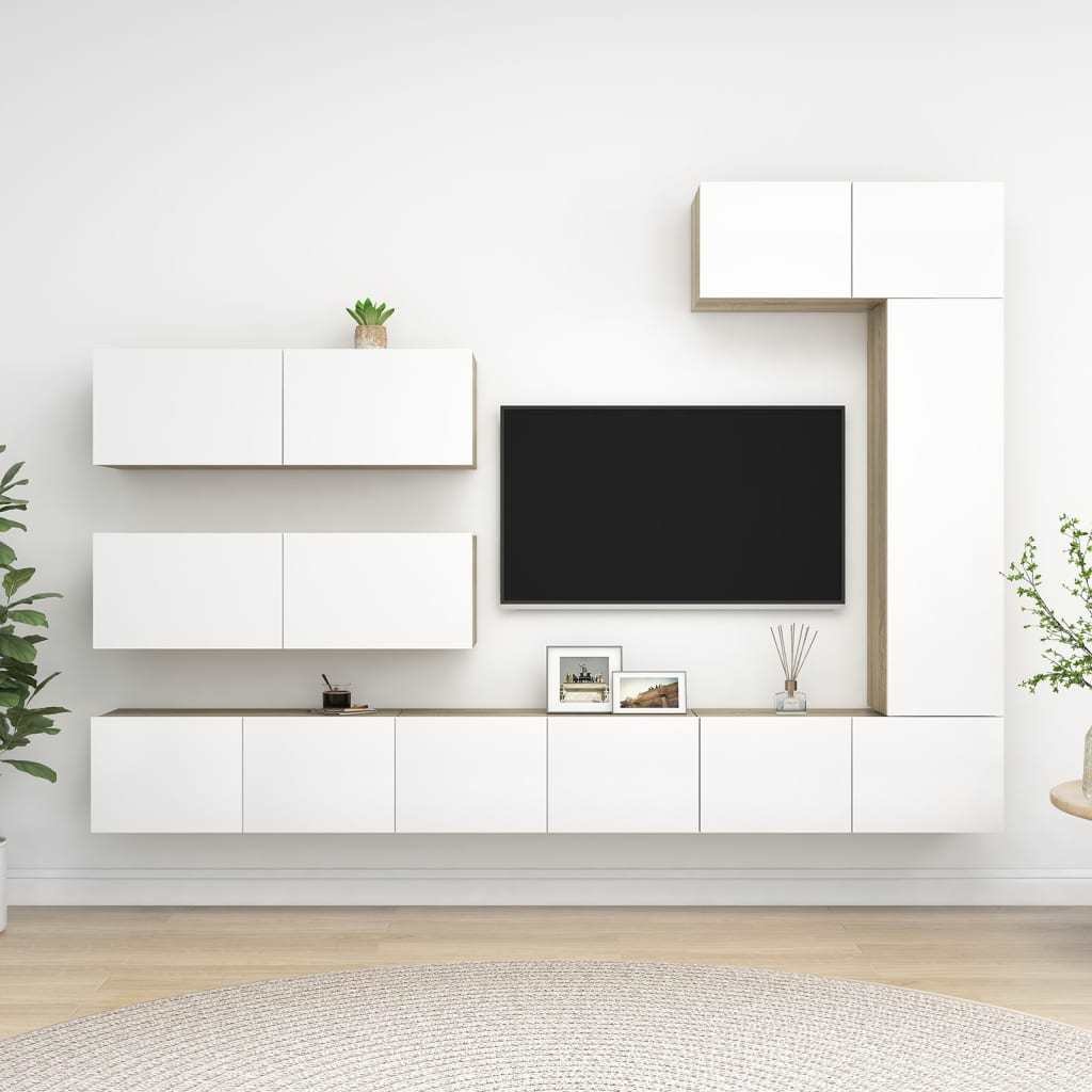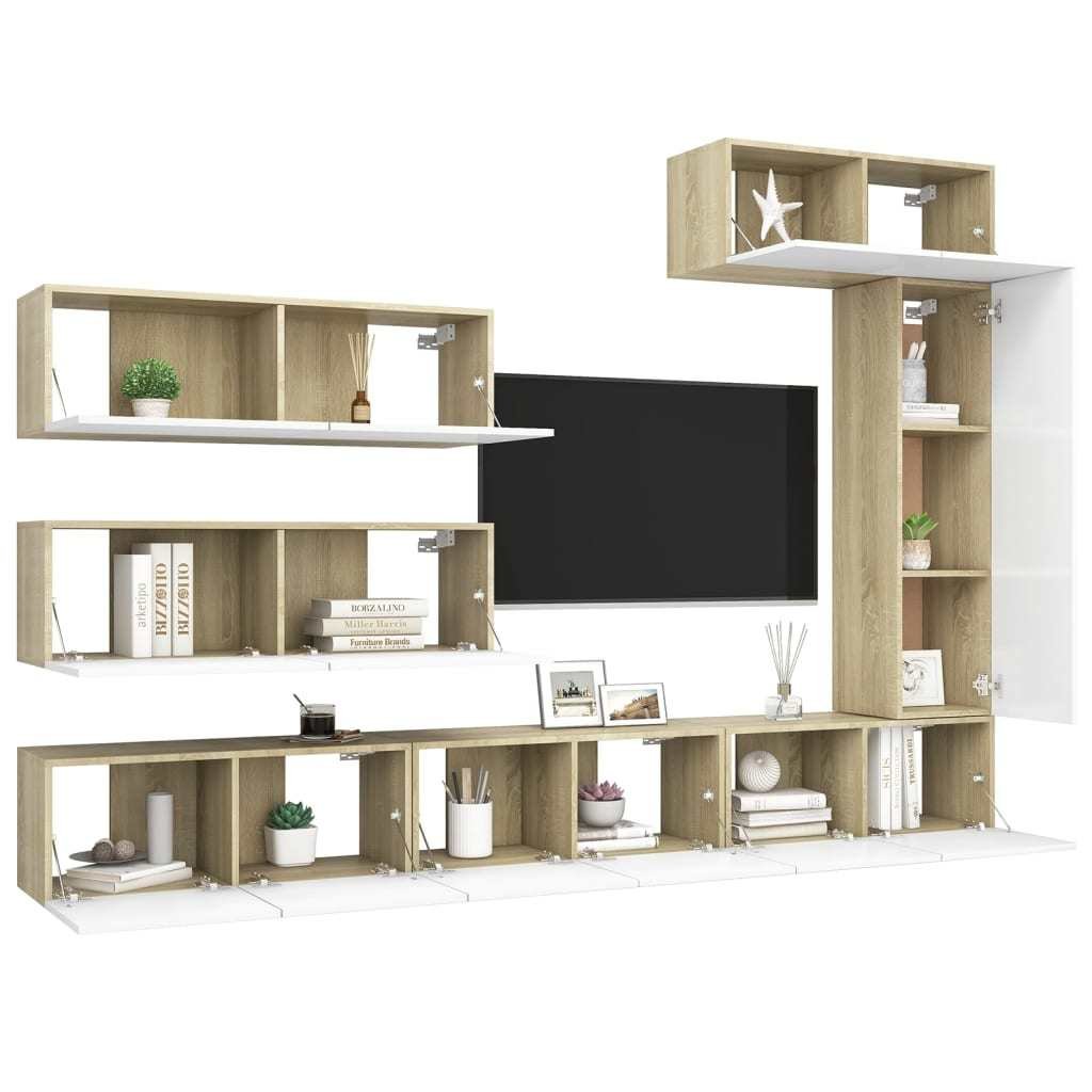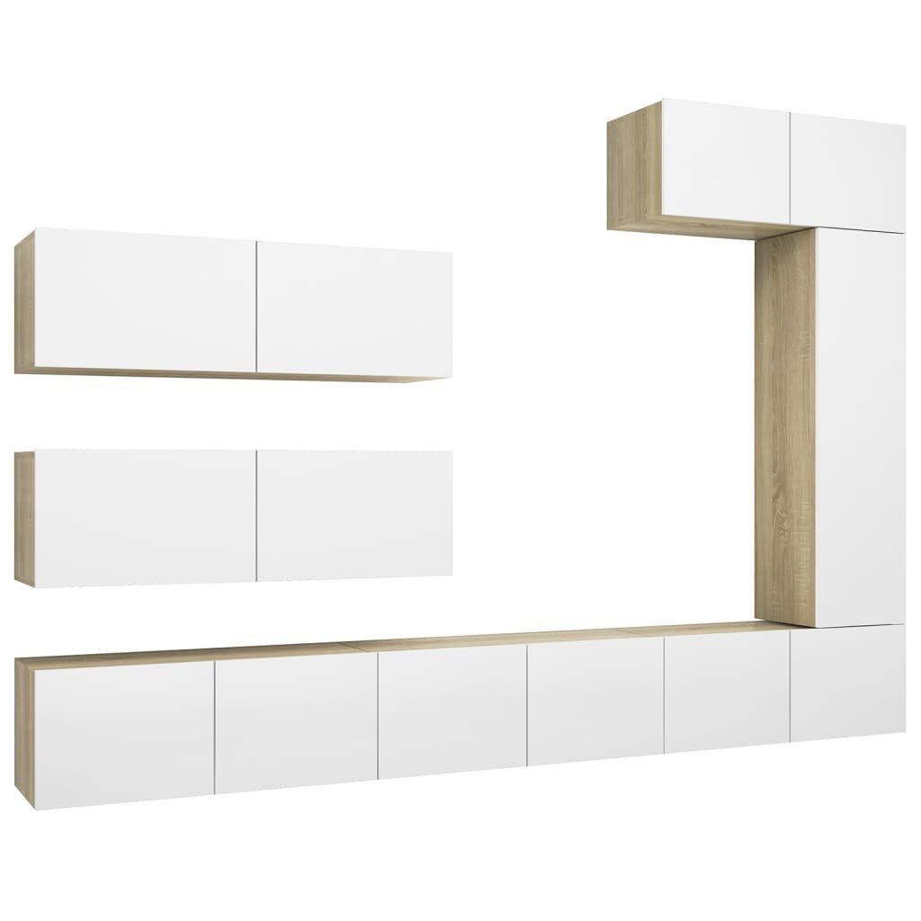 7 Piece TV Cabinet Set White and Sonoma Oak Engineered Wood