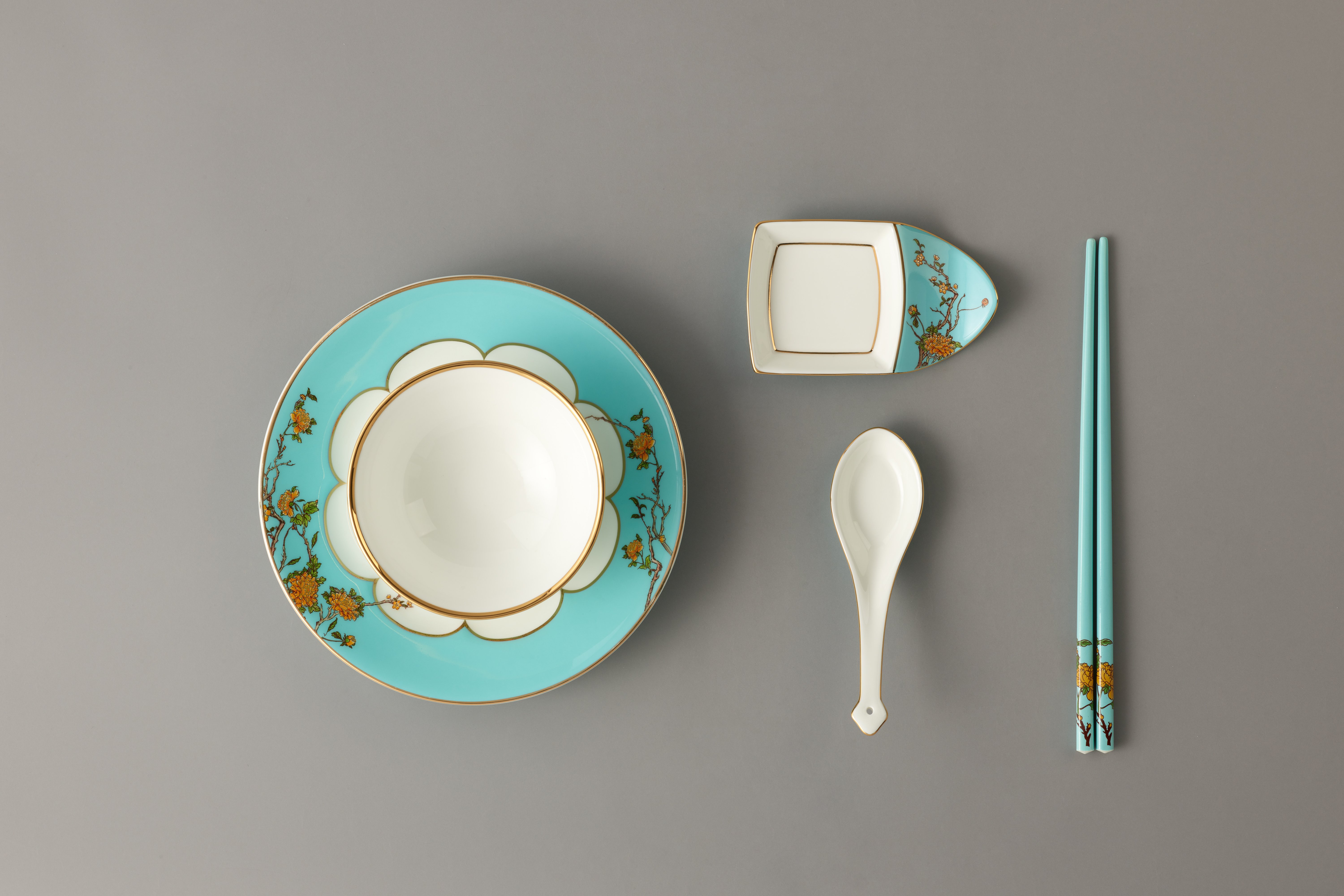 4.CERAMIC TABLEWARE SET INCLUDES - 205mm plate x 1, 120mm bowl x 1, 121mm saucer dish x 1, 140mm spoon x 1, 1 pair of chopsticks.