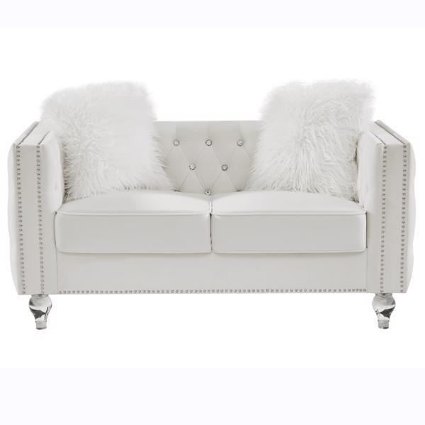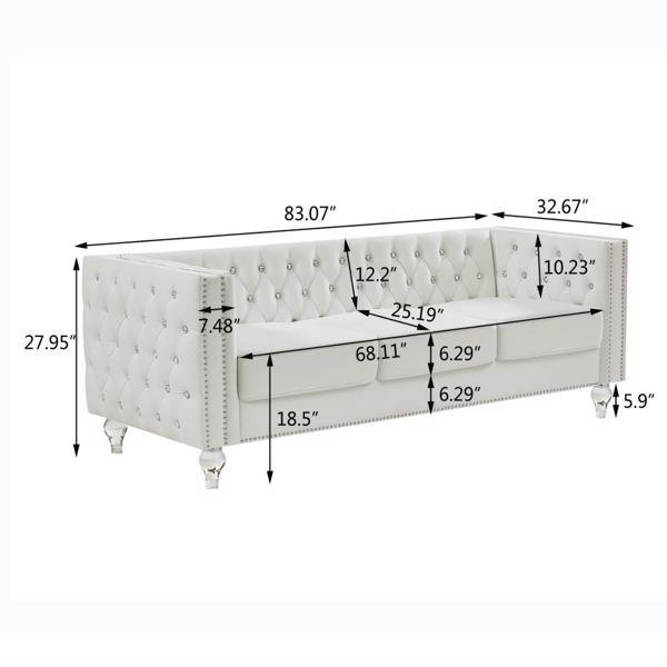 Home > Beige, 2+3 Seat Sofa Set, Velvet Crystal Buckle Upholstery Sofa, Crystal Feet, Removable Cushion, Four Plush Pillow