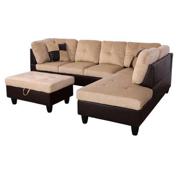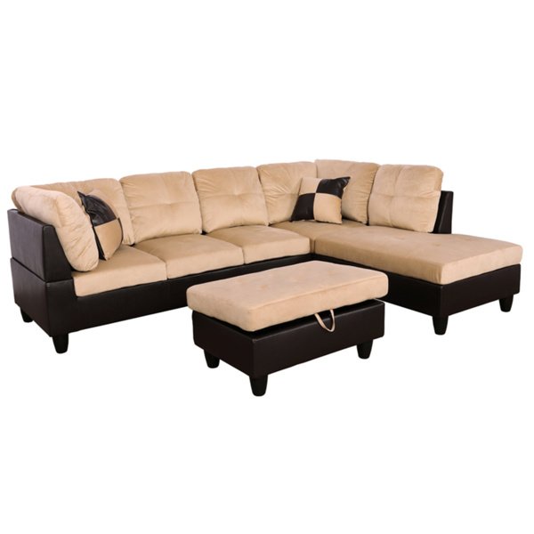 Beige and Brown Color Lint And PVC 3-Piece Couch Living Room Sofa Set B
