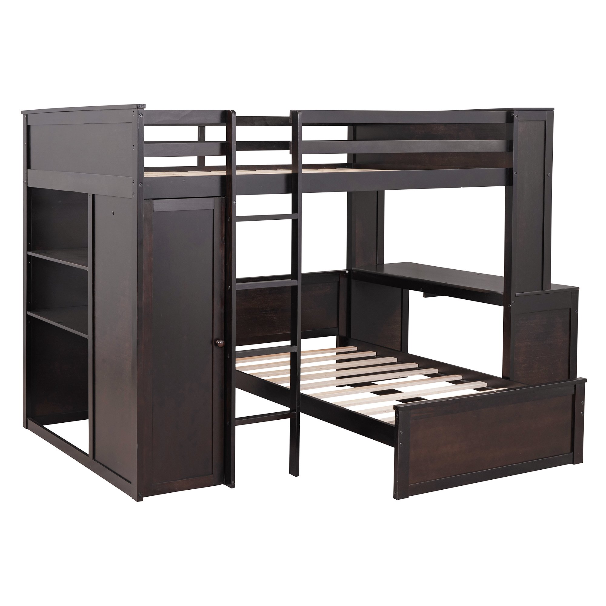 Full size Loft Bed with a twin size Stand-alone bed, Shelves,Desk,and Wardrobe