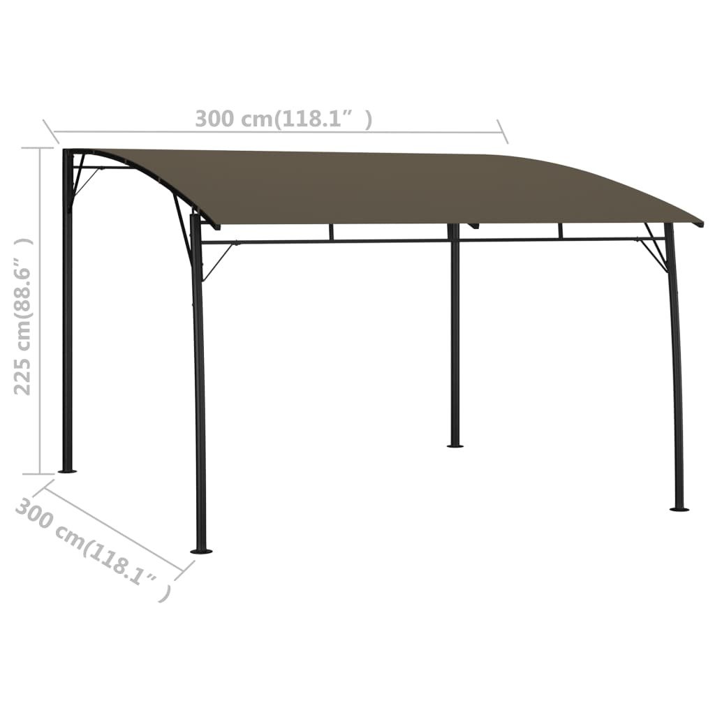 Note: This product should NEVER be used under bad weather; such as strong wind; heavy rain; snow; storm; etc.Color: TaupeMaterial: Powder-coating steel; fabric (100% polyester)Dimension: 9.8' x 9.8' x 8.4' (L x W x H)Assembly required: Yes
