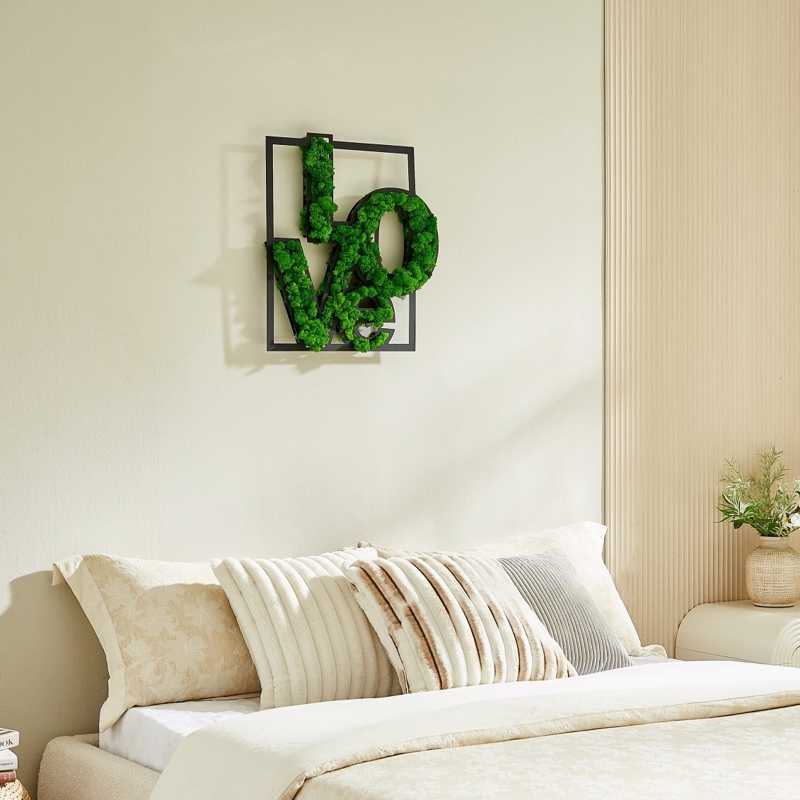Craftsmanship: The intricate arrangement of the preserved moss forming the word "LOVE" showcases skilled craftsmanship and attention to detail, highlighting the quality of the piece.