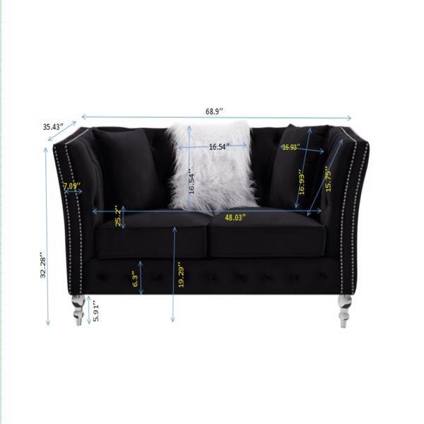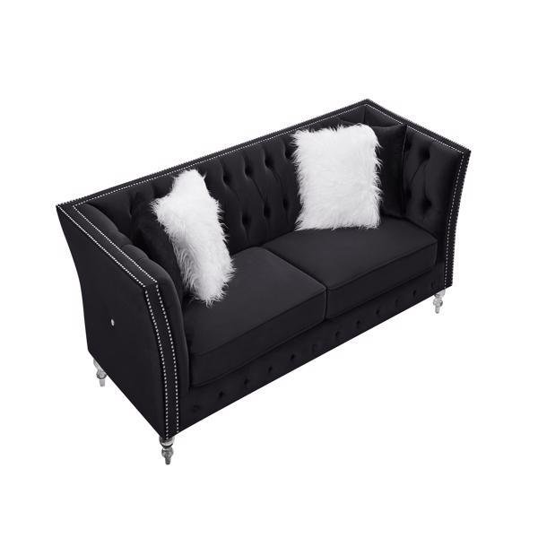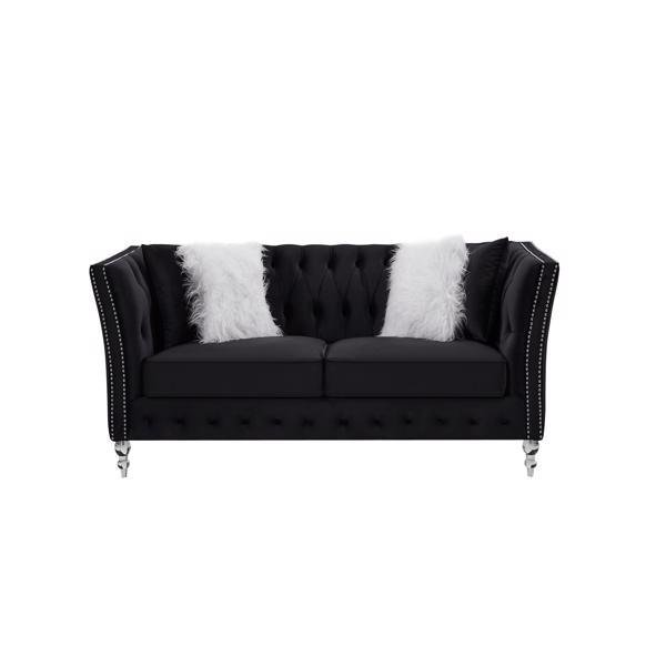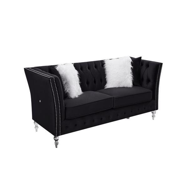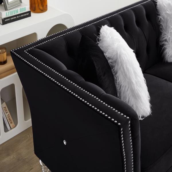 LTL, Black, Velvet, 2+3 Seat Sofa Set, Acrylic Feet, Cushion Combination Lounge Sofa, Deep Tufted Button Luxury Sofa for Living Room