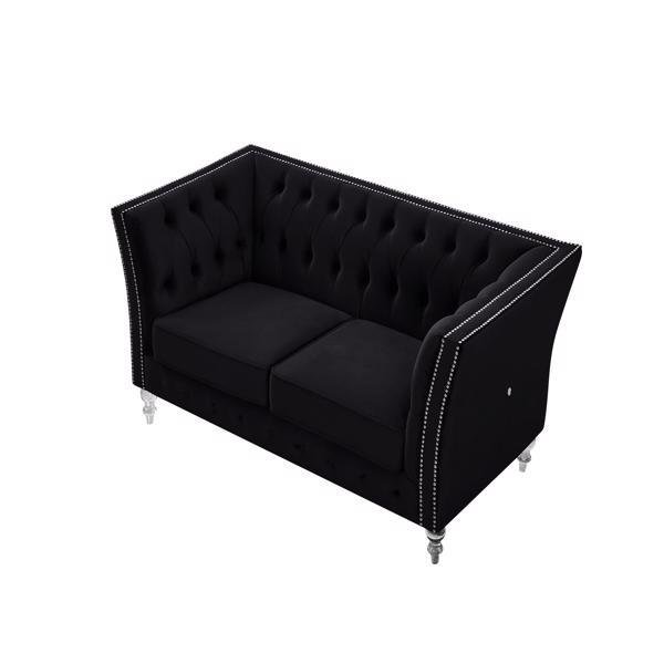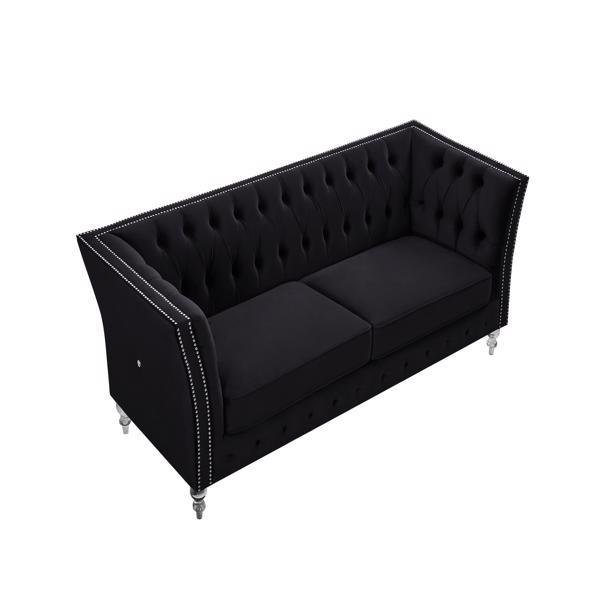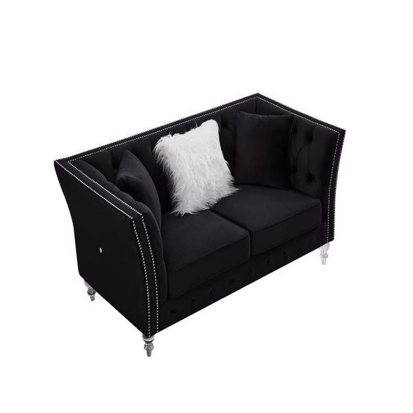 Home > LTL, Black, Velvet, 2+3 Seat Sofa Set, Acrylic Feet, Cushion Combination Lounge Sofa, Deep Tufted Button Luxury Sofa for Living Room