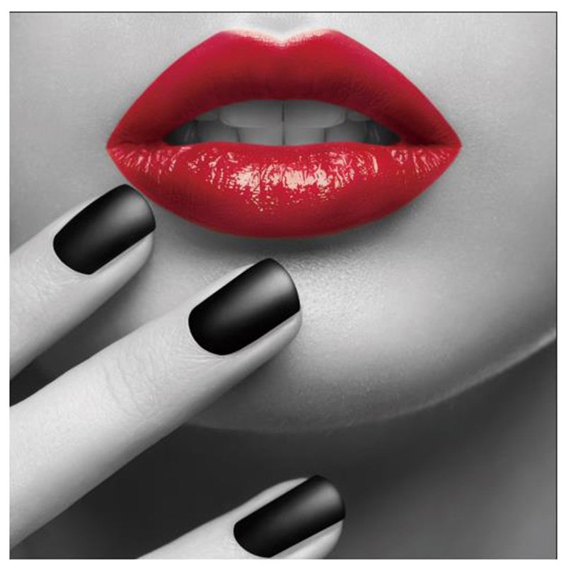 Blending the eclectic and the sensuous; this contemporary acrylic wall art from Oppidan Home is designed for those looking to add a striking focal point to any living room; bedroom; or office. The image features a close up shot of black-painted fingers being held seductively against a set of lips emblazoned with bright red lipstick. The sharp relief between the white-painted face; the fleshy; red lips; and the black fingernails creates a stunning exhibition of desire and seduction. The 100% acrylic construction makes for a glossy finish; bringing the image to life in any setting and with any amount of light. Ready to hang and featuring a square shape; the wall art measures 40 inches high and 40 inches wide. To clean and maintain acrylic wall art; wipe with damp cloth or non-abrasive cleaner. Easy to hang hardware included. One Year Limited Manufacturer Warranty.