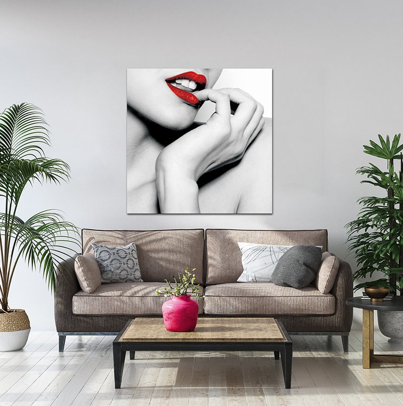 Blending the eclectic and the sensuous; this contemporary acrylic wall art from Oppidan Home is designed for those looking to add a striking focal point to any living room; bedroom; or office. The image features a close up shot of a seductive set of lips; with the subject's fingers playfully dancing in and around her mouth. The striking contrast between the fleshy; red lips and pale skin tones creates a stunning exhibition of desire and seduction. The 100% acrylic construction makes for a glossy finish; bringing the image to life in any setting and with any amount of light. Ready to hang and featuring a square shape; the wall art measures 40 inches high and 40 inches wide. To clean and maintain acrylic wall art; wipe with damp cloth or non-abrasive cleaner. Easy to hang hardware included. One Year Limited Manufacturer Warranty.