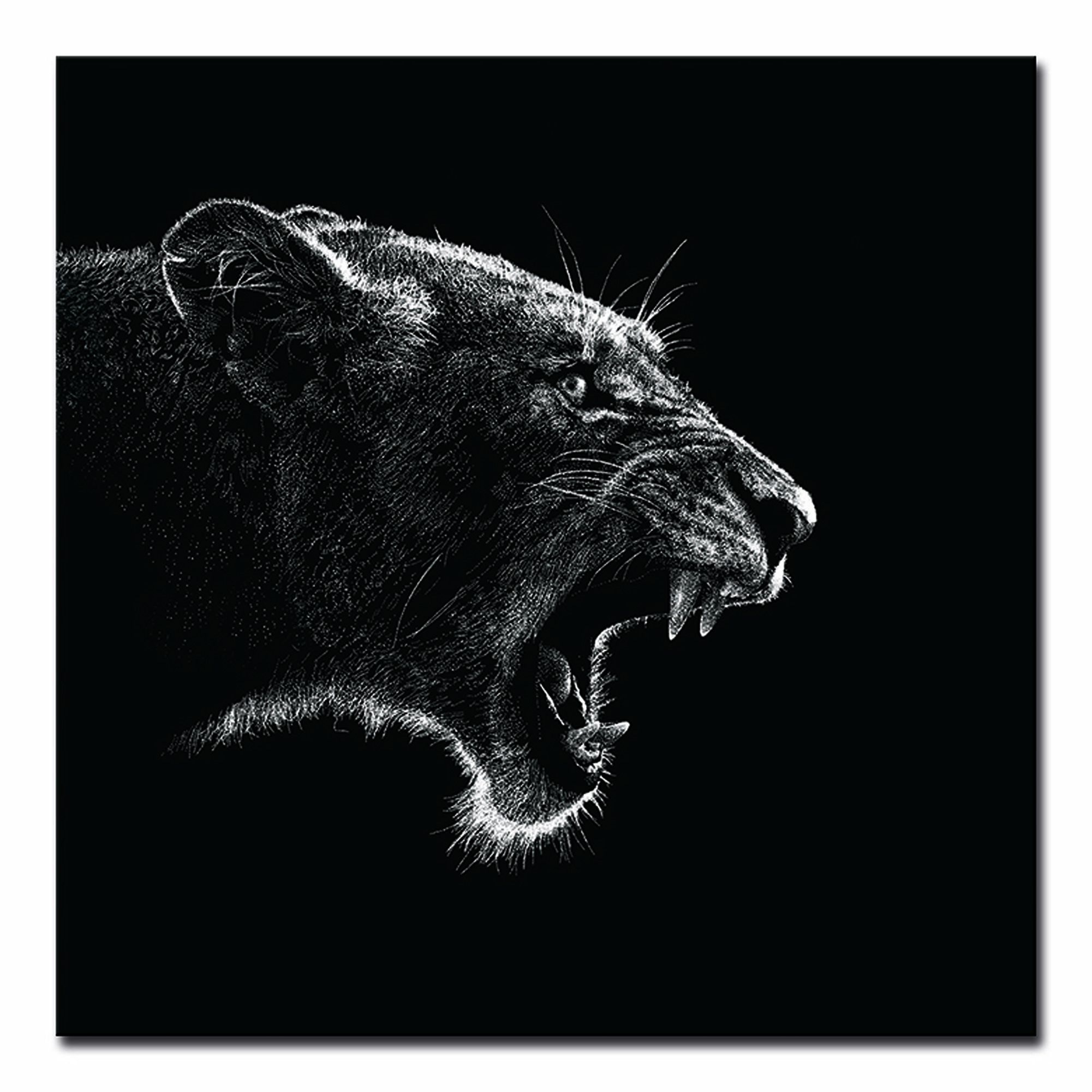 This contemporary acrylic wall art is designed for those looking to add a striking focal point to any living room, bedroom, or office. The image contains a roaring lioness with a black background. The 100% acrylic construction makes for a glossy finish, bringing the image to life in any setting and with any amount of light. Featuring a square orientation, this wall art measures 40 In. H x 40 In. W. Ready to hang hardware included. To clean and maintain acrylic wall art, wipe with damp cloth or non-abrasive cleaner. One Year Limited Manufacturer Warranty.
