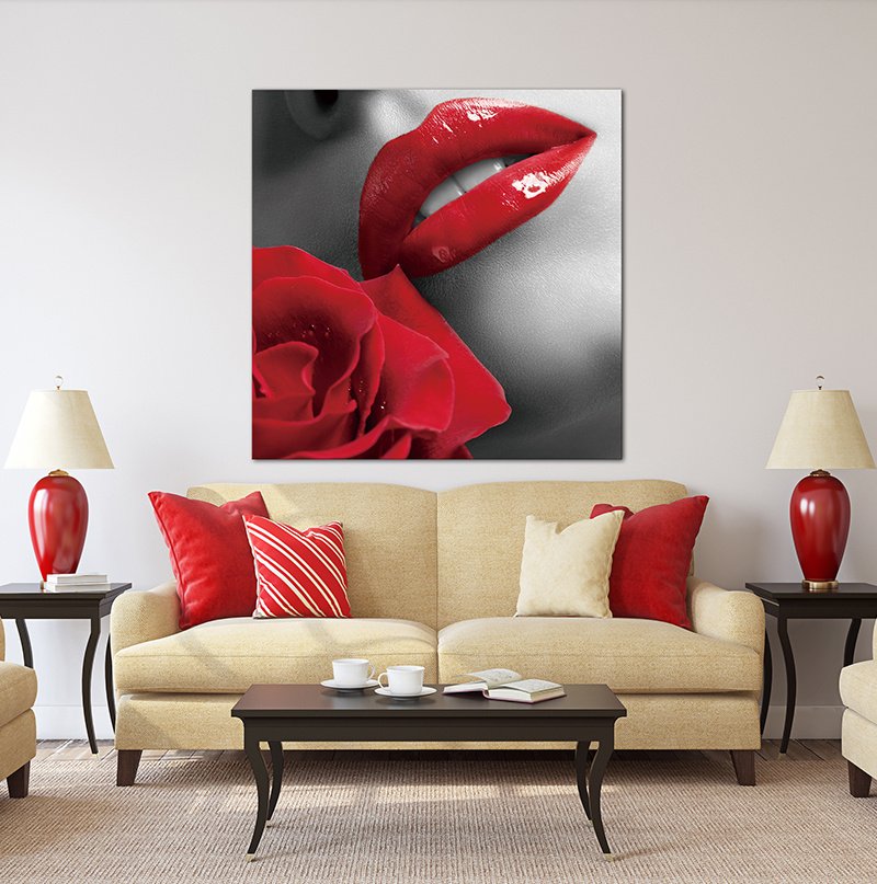 Blending the eclectic and the sensuous; this contemporary acrylic wall art from Oppidan Home is designed for those looking to add a striking focal point to any living room; bedroom; or office. The image features a close up shot of a rose being held seductively against a set of lips emblazoned with bright red lipstick. The sharp relief between the white-painted face and the fleshy; red lips and silky petals of the rose creates a stunning exhibition of the natural and the seductive. The 100% acrylic construction makes for a glossy finish; bringing the image to life in any setting and with any amount of light. Ready to hang and featuring a square shape; the wall art measures 40 inches high and 40 inches wide. To clean and maintain acrylic wall art; wipe with damp cloth or non-abrasive cleaner. Easy to hang hardware included. One Year Limited Manufacturer Warranty.
