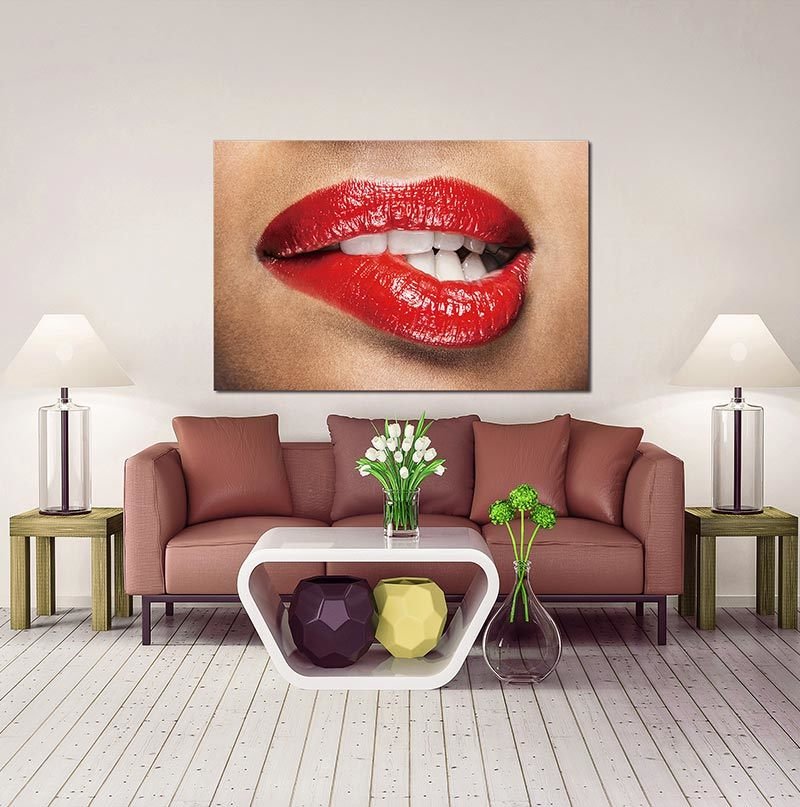 Blending the eclectic and the sensuous; this contemporary acrylic wall art from Oppidan Home is designed for those looking to add a striking focal point to any living room; bedroom; or office. The image features a close up on a set of sensuous red lips; with the lower lip held firmly by the subject's teeth. The 100% acrylic construction makes for a glossy finish; bringing the image to life in any setting and with any amount of light. Ready to hang and featuring a horizontal rectangular orientation; the wall art measures 32 inches high and 48 inches wide. To clean and maintain acrylic wall art; wipe with damp cloth or non-abrasive cleaner. Easy to hang hardware included. One Year Limited Manufacturer Warranty.