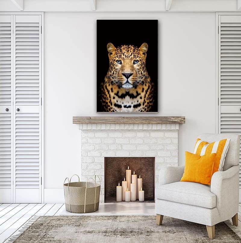 Capturing the strength and beauty of its subject; this contemporary acrylic wall art from Oppidan Home is designed for those looking to add a striking focal point to any living room; bedroom; or office. The image features a close-up shot of a leopard in black and white. The dark background contrasts with the white fur and black spots of the leopard; focusing the viewer's attention on the grace and strength of its subject. The 100% acrylic construction makes for a glossy finish; bringing the image to life in any setting and with any amount of light. Ready to hang and featuring a square shape; the wall art measures 48 inches high and 32 inches wide and is constructed of canvas stretched over a wooden frame. To clean and maintain acrylic wall art; wipe with damp cloth or non-abrasive cleaner. Easy to hang hardware included. One Year Limited Manufacturer Warranty.