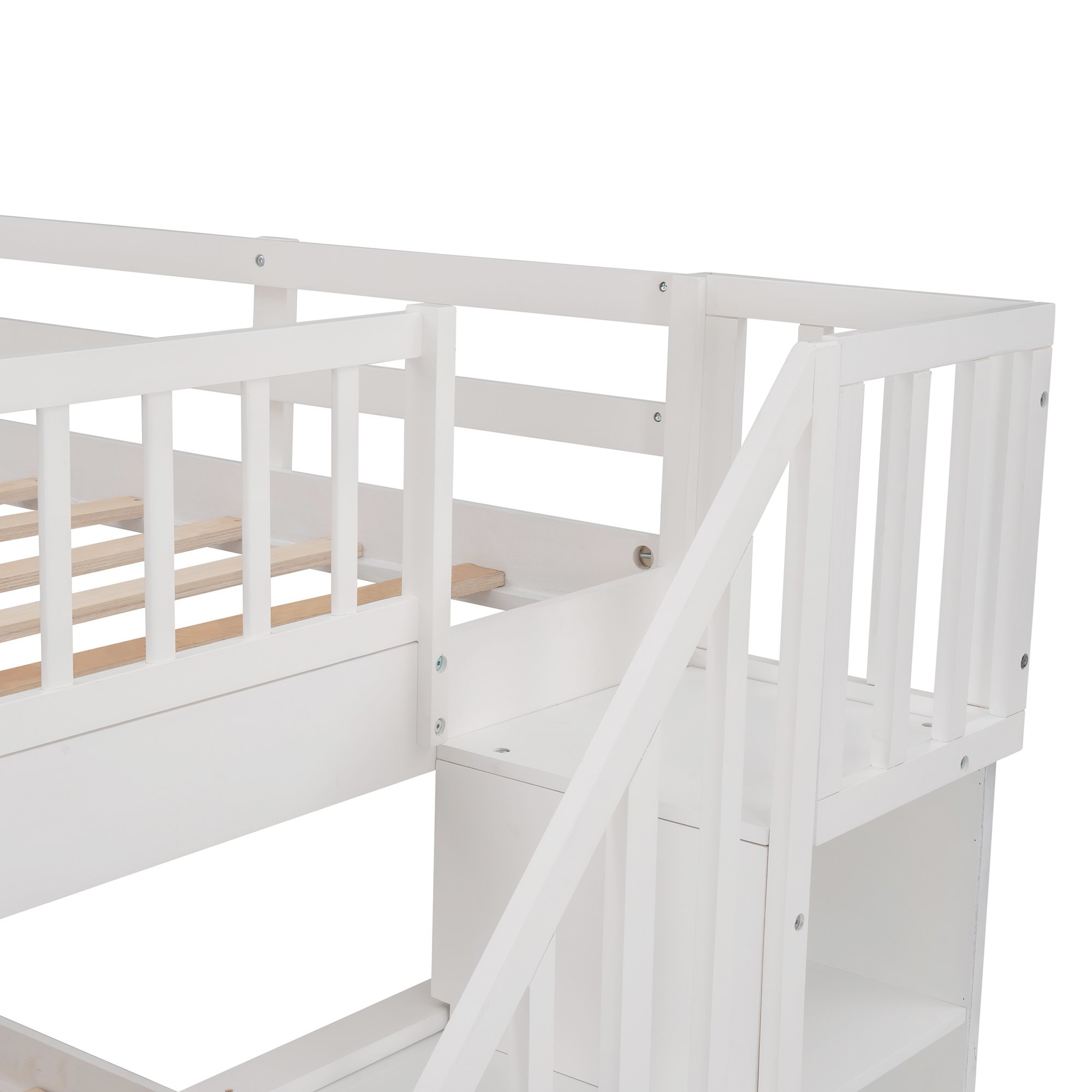 Home > Stairway Full-Over-Full Bunk Bed with Drawer; Storage and Guard Rail for Bedroom