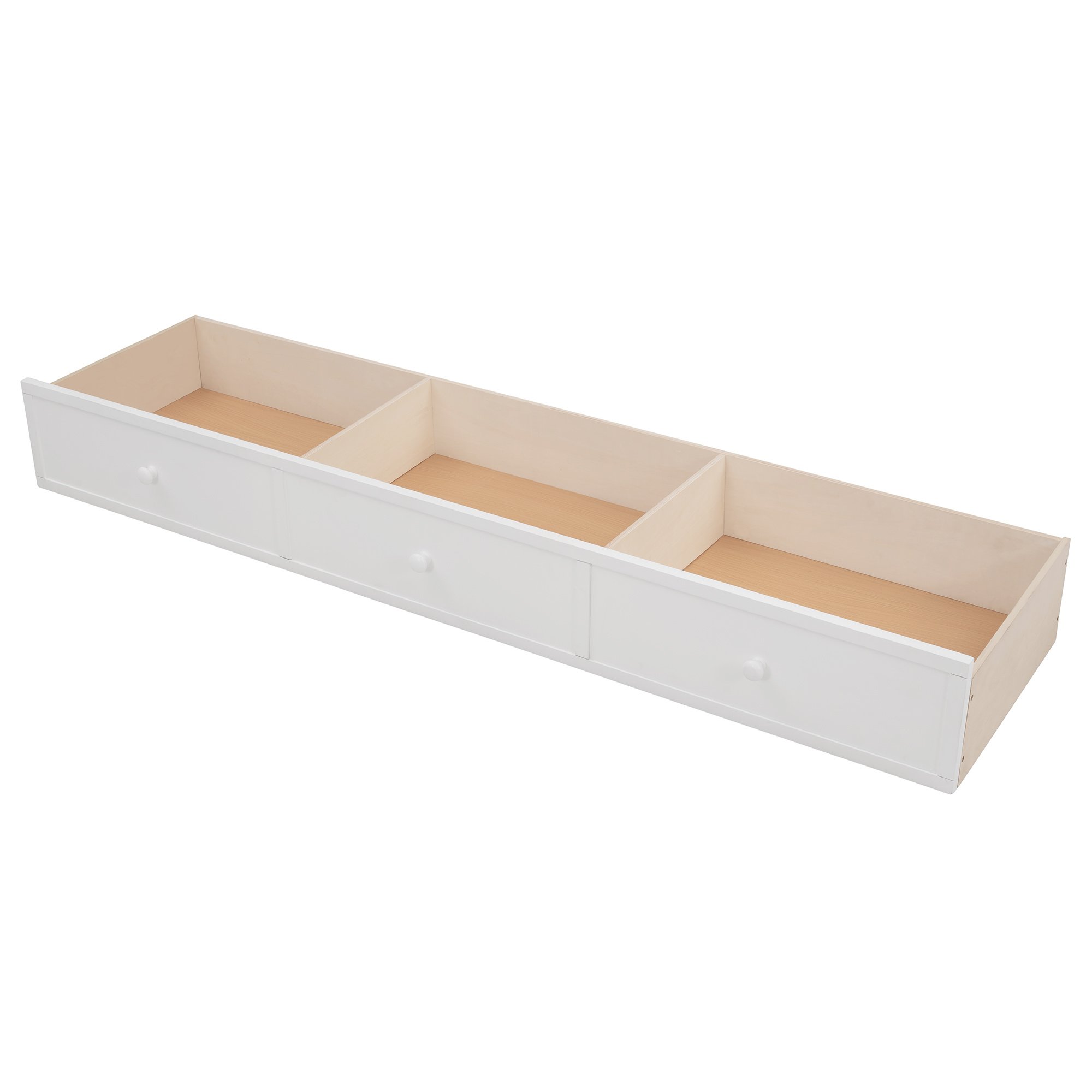 If you need extra sleeping space ; this Stairway Full-Over-Full Bunk Bed with Drawer is perfect for your home. Four open shelves located beneath the attached staircase provide ample storage for your goods and bedding. High-quality; solid pine legs and a strong; durable frame ensures stability and durability for long-term use; and can be separated into two full-size bed. Slat kit included so box springs are not required. This bunk bed is designed with a clean silhouette and a hue of elegance. It suits all styles of home decoration; and completes the look of any bedroom.