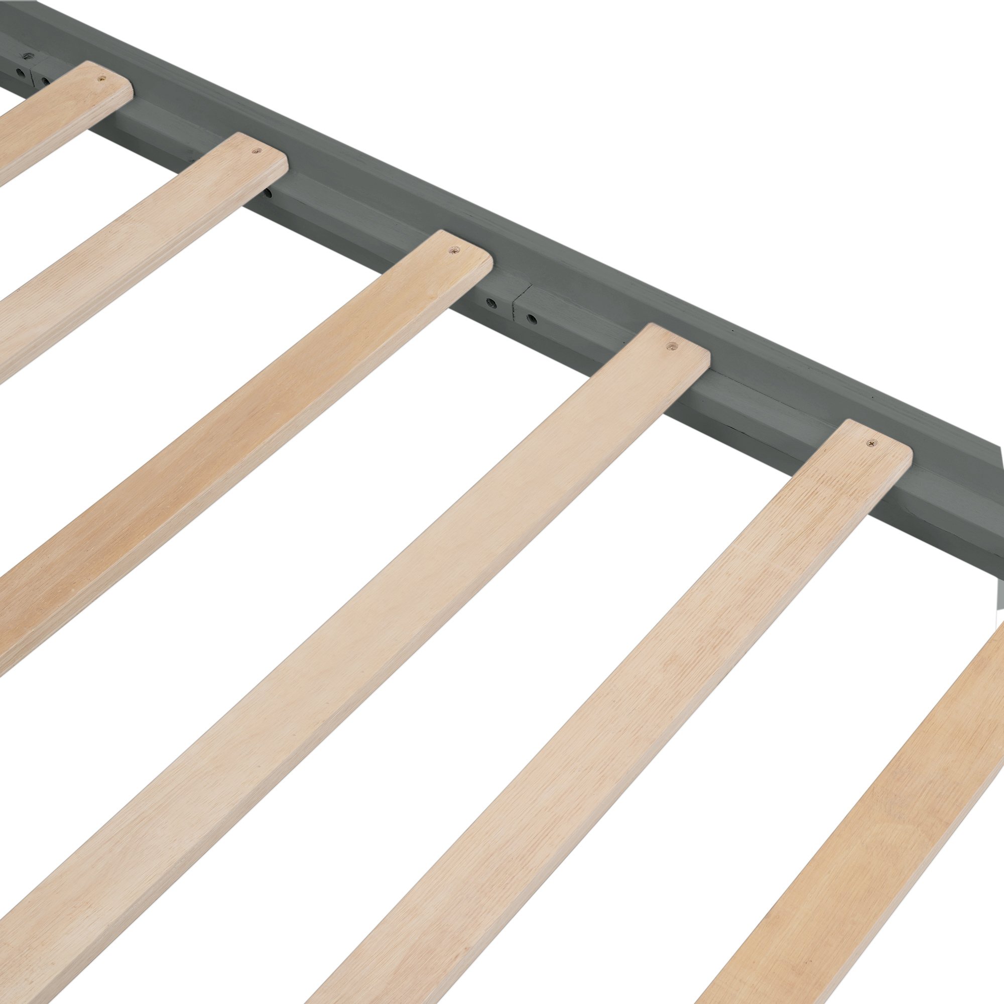 If you need extra sleeping space or you love sleepovers; this Full-Over-Full Bunk Bed with Twin size Trundle is perfect for your home. Four open shelves located beneath the attached staircase provide ample storage for your clothing and bedding. High-quality; solid pine legs and a strong; durable frame ensures stability and durability for long-term use; and can be separated into two full size bed. Slat kit included so box springs are not required. This bunk bed is designed with a clean silhouette and a hue of elegance. It suits all styles of home decoration; and completes the look of any bedroom.