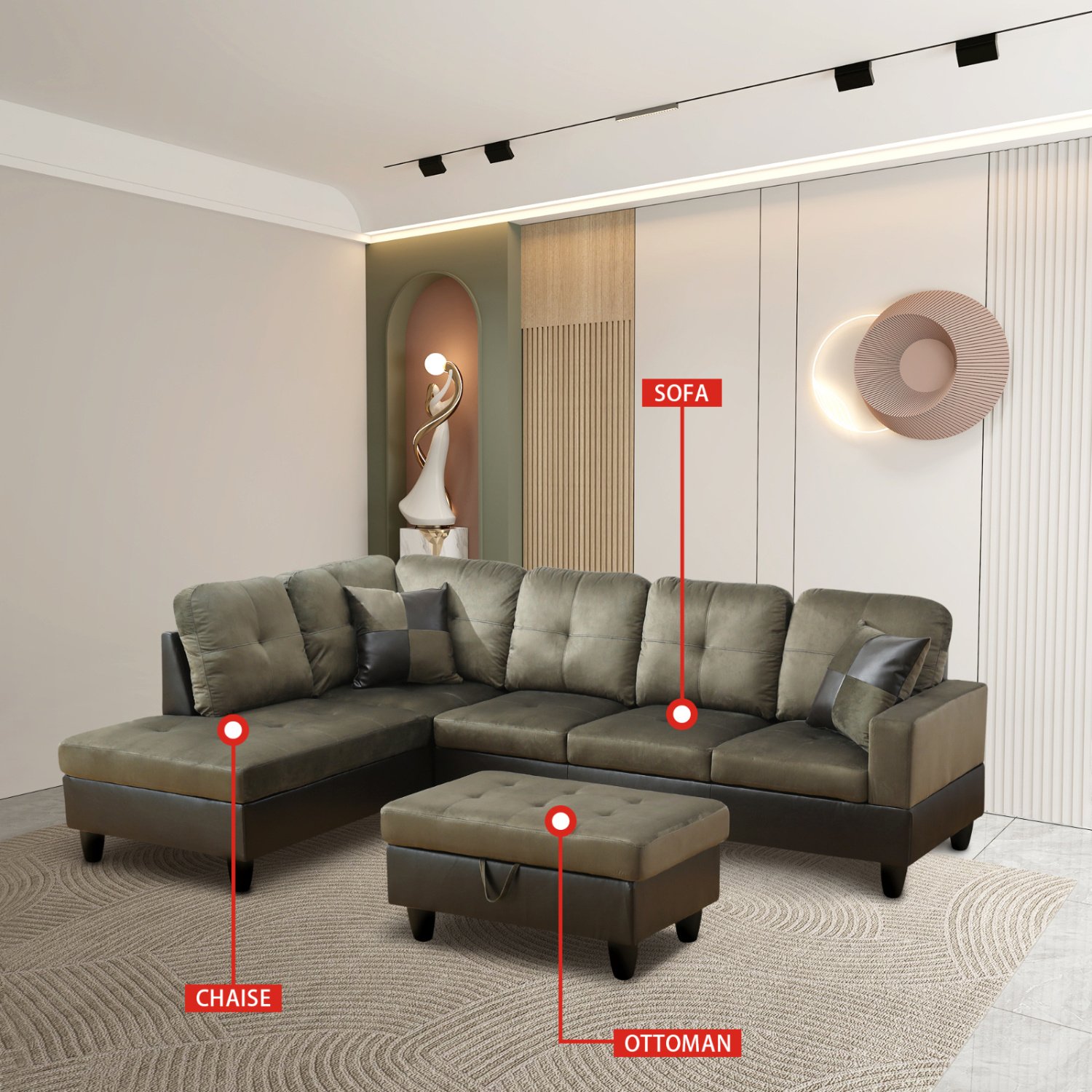 [Spacious Seating]: The 3-seater couch measures 71.5x32x35 inches, providing ample seating for friends and family to gather comfortably. The chaise, on the other hand, measures 74.5x32x35 inches, offering an ideal spot to stretch out and relax or curl up with a good book.