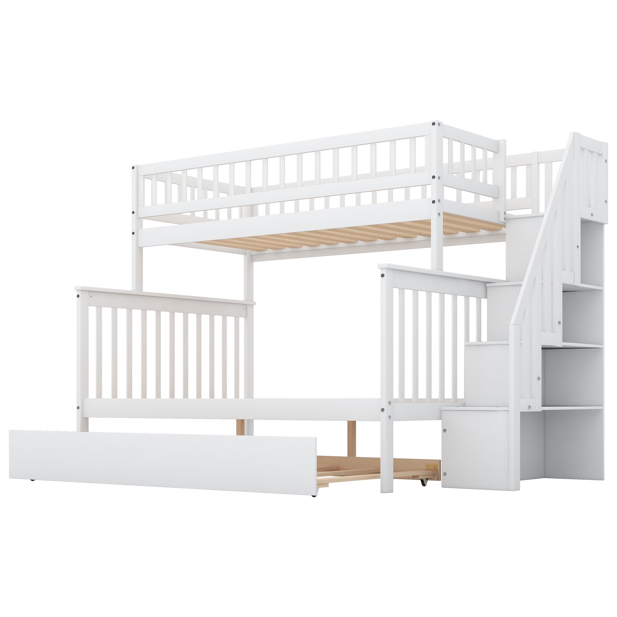 Twin over Full Bunk Bed with Trundle and Staircase