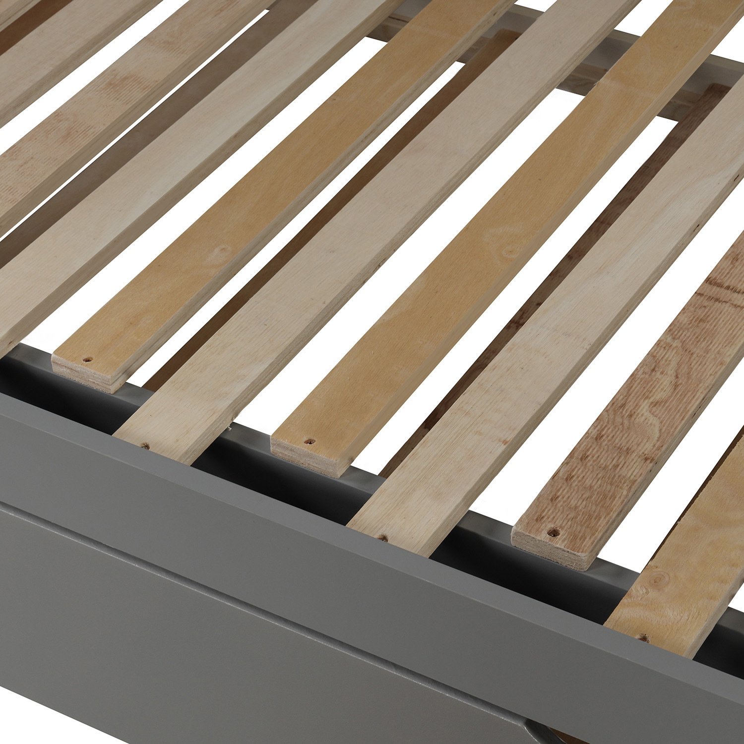 4.The upper bunk features a full-length guardrail, while the bottom bunk is designed to include both a headboard and footboard. Along with the handrail, this bunk bed ensures top-notch security for your family thanks to solid legs, made of solid pine for added strength and durability.